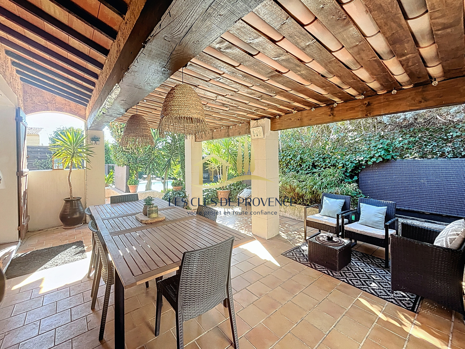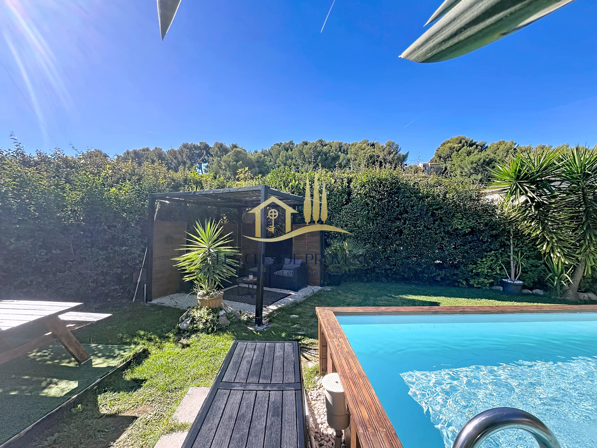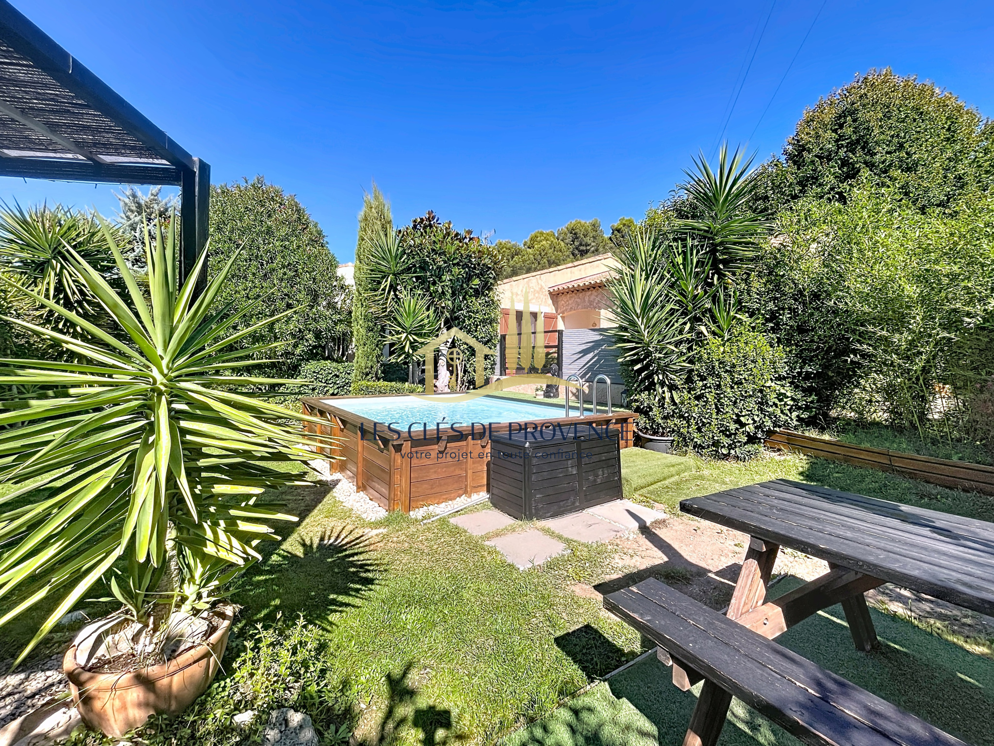 Édifiée sur une parcelle arborée d'environ 635m², cette propriété offre un véritable havre de paix : une terrasse ombragée pour vos repas d’été, et une piscine qui promet de belles journées ensoleillées.